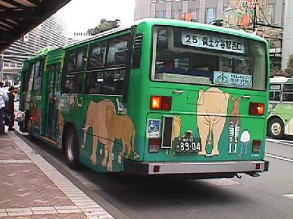 2000年1月の日曜日、横浜駅西口に行ってみるとズーラシアカラーの6−3581号車が25系統に入っていました。この車両は何回か見ていますが、間近で見たのははじめてだったのでいろいろと見ていました。