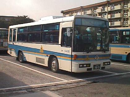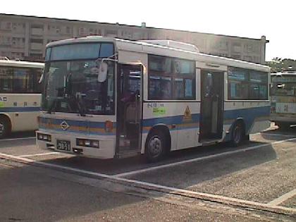 現在、滝頭営業所に所属する特定車です。0−4101のページでもふれておりますが、こちらも中型車です。この車両は市立中村養護学校(浦舟町近く)の担当車両で、学校周辺の立地柄か中型車の使用となっています(他の営業所の同校担当車も中型車を使用しています)。
