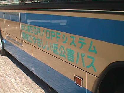 こちらは1998年に行われた「かながわ・ゆめ国体」に際して増備された車両です。スロープ・補助ステップがついており、なおかつ排気ガスの窒素酸化物を20%低減させる排ガス再循環システム(EGR)と黒煙を(ほとんど)除去することのできるDPFフィルターを装備しています。また、アイドリング・ストップ機構も設置されています。