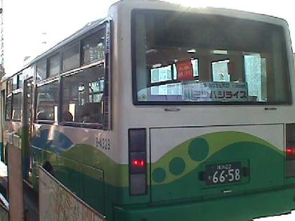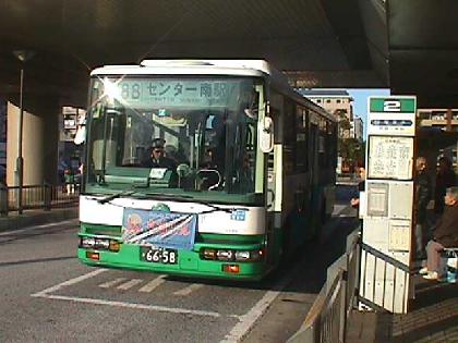 先のページで紹介したとおり、都心循環車両は当初8台配属され、7台使用体制で130、131系統を担当してきました。しかし、都心循環バスが現在の体制に変更になる際、1台が余剰となり港北ニュータウンに転属となりました。これがこの車両です。