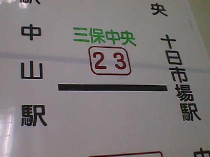 - 2枚目は23系統の三保中央関連です。三保中央については中山駅〜三保中央〜十日市場駅〜青葉台駅と三保中央〜十日市場駅〜青葉台駅という2つの子系統から成り立っていますが、中山駅〜三保中央〜十日市場駅という(初期?)設定もあったようです。