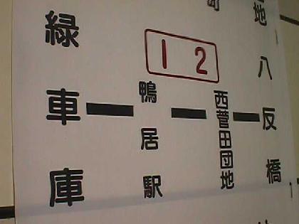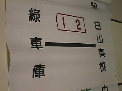 - 3枚目は現在でもありますが12系統の緑車庫〜白山高校のものです。運行区間中に駅が入らない運用の方向幕です。