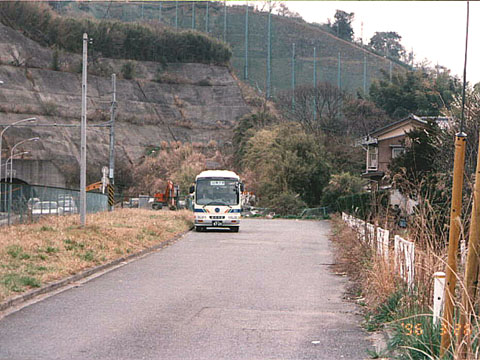 上は1996年の写真です。写真に写っているのは93系統の車両です。既に小型車リエッセによる運行となっています。この時は93系統は氷取沢止まりで、93系統が止まっているところは市営バスと江ノ電バスの折返場になっていました。金沢文庫へ向かう道路は写真左側のトンネルで1車線での交互通行となっていました。