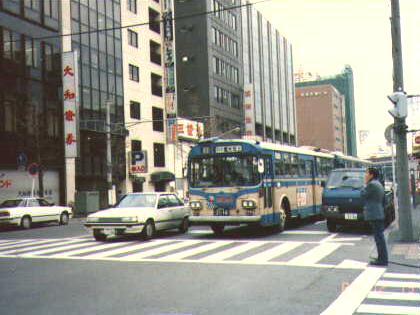 バスの方を見てみましょうか。上の写真は当時の最古参(に近い)車両で、後部方向幕のない車両です。一方下の写真は現在での最新鋭であるノンステップバスです。上のバスと下のバスでは23年の年の差がありますが、大きく変わったものです。