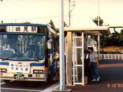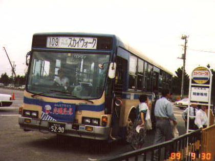 下の写真はその1年後のものです。ベイブリッジ開業当初は17系統はスカイウォーク前までは来ず、大黒ふ頭にて折返しをしていました。しかし、その後この17系統もスカイウォーク前まで乗り入れるようになり、またスカイウォーク前のバスターミナルも整備されました。