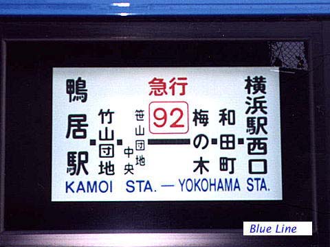 緑営業所の運転士さんのご協力による幻の方向幕です。 92系統の幻の(?)方向幕である鴨居駅〜横浜駅西口の方向幕です。今のところは予定がないようですが、竹山団地〜笹山団地の通用深夜バスのみ走る区間を運行するような方向幕になっています。