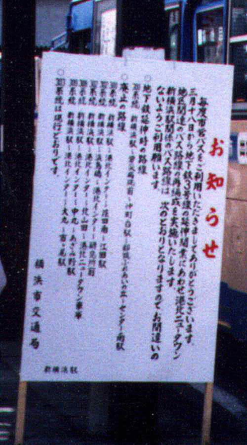 | ↑ 上の写真の看板の拡大写真 1993年3月17日:新横浜駅にて撮影 (写真をクリックすると拡大された写真が出てきます) |