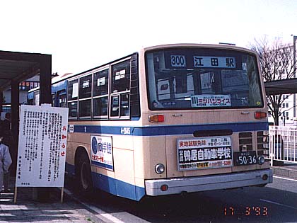 | ↑ 港北営業所の車両 1993年3月17日:江田駅にて撮影 (写真をクリックすると拡大された写真が出てきます) |