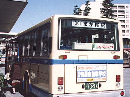 こちらも地下鉄あざみ野開業の前日に撮影した写真です。301系統は市が尾駅〜江田駅間を港北ニュータウン経由で運行するバスとして昭和58年8月20日に運行を開始した路線です(300系統も同じ日に運行開始です)。運行当時は港北ニュータウン地区の開発が始まったばかりの頃で、道路が出来ていなかった区間もあったそうです。