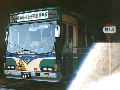 生麦のバス停で撮影した特定車4−1102(1984年度車)です。鶴見営業所には営業車の1984年度車の配属がなく、この特定車のみの配属でした。キュービックボディに以前の観光バスカラーというのもなかなか面白い組み合わせですね。