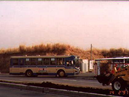 2枚目と3枚目はそれから4年後のものです。この頃には上記の道路が出来、新横浜駅〜北川橋南間の302系統がこの北山田まで走るようになっていました。新横浜駅から東急バス(303系統と乗り入れ)で北山田まで先回りし、後からやってくるこの302系統で新横浜駅まで戻ってきました。確かこの頃は302系統で北山田まで行く便が少なく、念入りに(?)時間を調べてここまで来たものです(その結果、東急バスで行かないと間に合わないということで東急バスに乗ったものでした。ちなみにこの時乗ったバスは新横浜駅から乗ったバスの料金箱の調子が悪く、途中の新羽営業所で車両交換をしたものでした)。1枚目と比べると道路は出来ていますが、まだ後方の景色にはさほど変化が見られませんでした。2枚目の写真ですが、ブルドーザーが写真に入っているのが特徴でしょうか・・・。