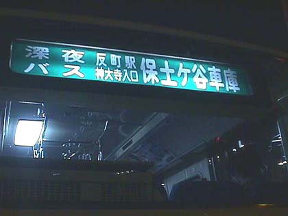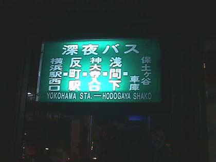50系統深夜バスの前面方向幕 (写真をクリックすると拡大されたものが出ます) |