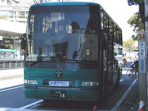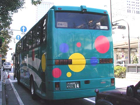 ご覧いただいたとおり観光バス仕様の車両です。横浜市交通局が貸切バス事業を廃止にした際、余った観光バスを川崎市交通局に売却したものです。川崎市交通局ではこの車両を路線バス仕様に改造(降車合図ボタン、料金箱、整理券発行機などの設置)の上、川崎駅から出るアクアライン経由の路線バス(木更津駅、袖ヶ浦駅行)で使用しています。