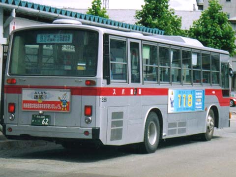 フォグランプが角形で、前扉と中扉の間の窓の数が(戸袋窓を含めて)3枚なので、元は若葉台営業所の1989年度車と思われます。